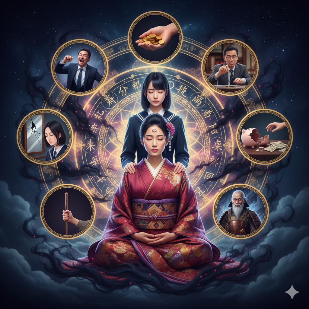| 因果応報による不運の連鎖 | 事故・病気・経済的損失が重なり、助けてくれる人が誰もいない | 蒔いた種が複利となって現実に現れるカルマの法則の発動 |