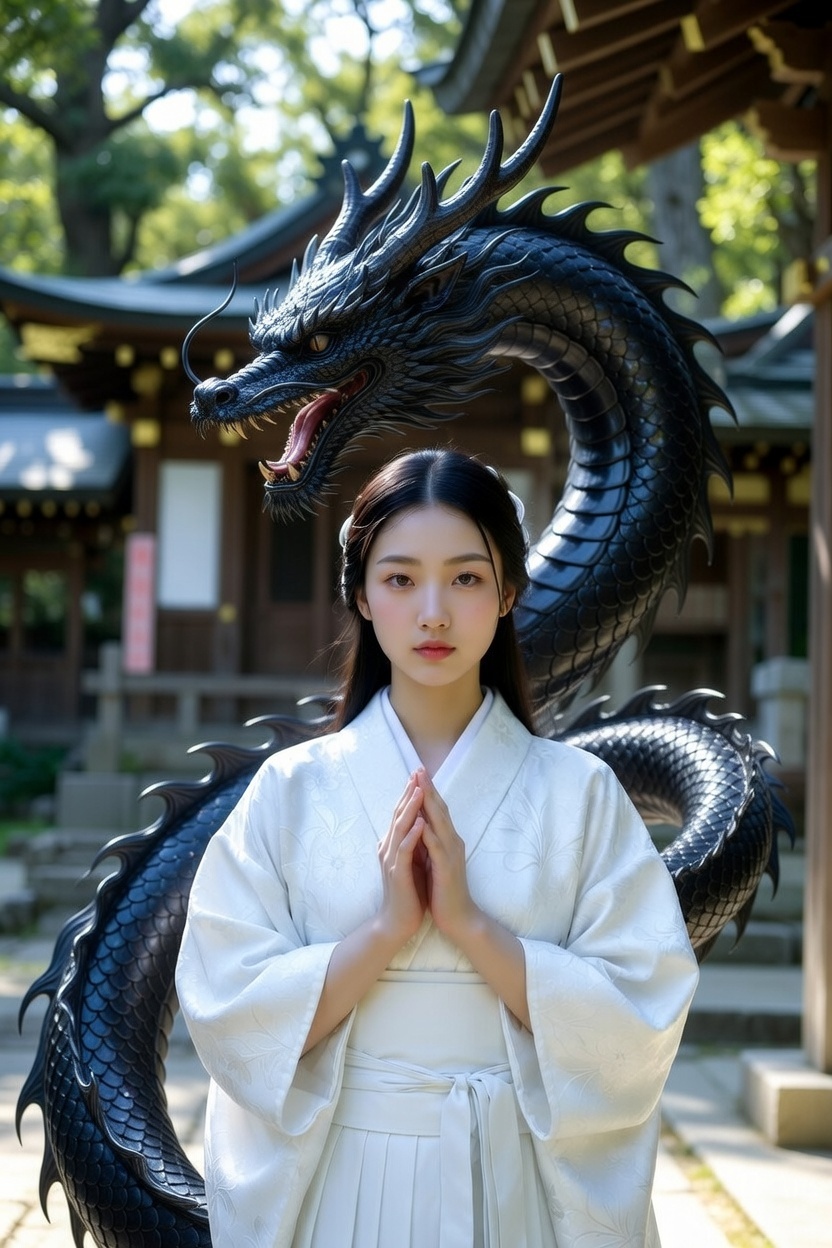 日本の霊的伝統においても、黒龍は特別な位置を占めています。熊野速玉大社・黒龍神社など、黒龍を祀る社は全国各地に存在し、その力強い守護と変革のエネルギーが古くから信仰されてきました。黒龍は水の龍神としても深い海・濁流・嵐の海を司り、その荒々しい力が人々の畏敬を集めてきた歴史があります。