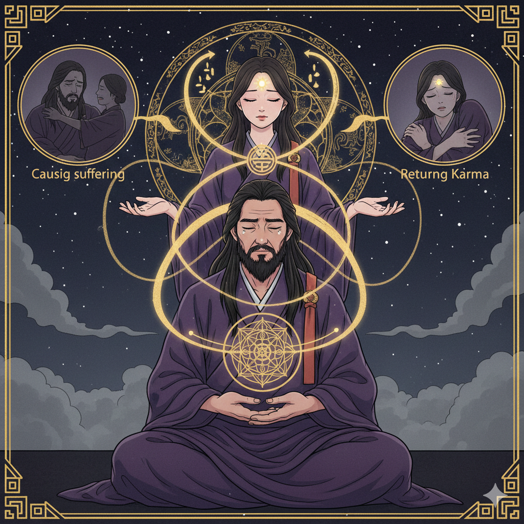 人を苦しめた人に自分に返ってくる理由は「宇宙の因果応報の法則が絶対的に機能しており、放出したエネルギーは必ず同質の体験として放出者に戻ってくるから」です。返ってくる形は言葉・裏切り・支配・金銭など行為の種類に対応した形で現れ、現世で清算が完了しない場合は来世カルマとして持ち越されます。